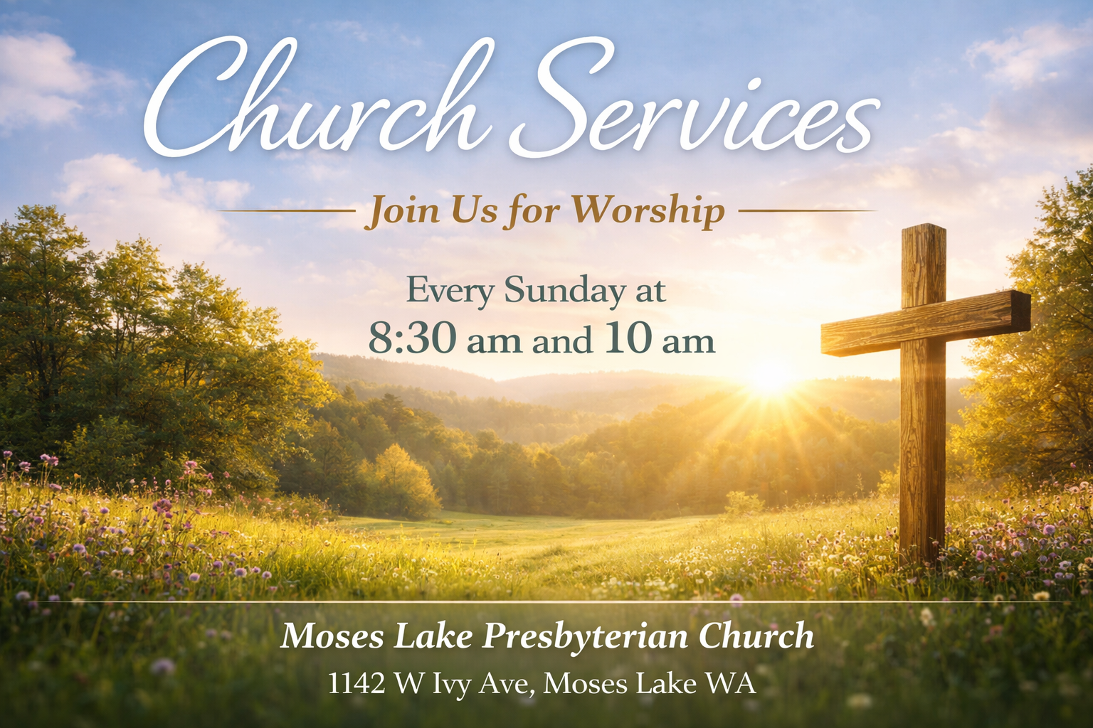 We like to say there’s more than one good time to come to church on a Sunday 😊 At Moses Lake Presbyterian, we offer two services each week—8:30 AM and 10:00 AM—so you can find a time that fits just right. Come as you are and join us!