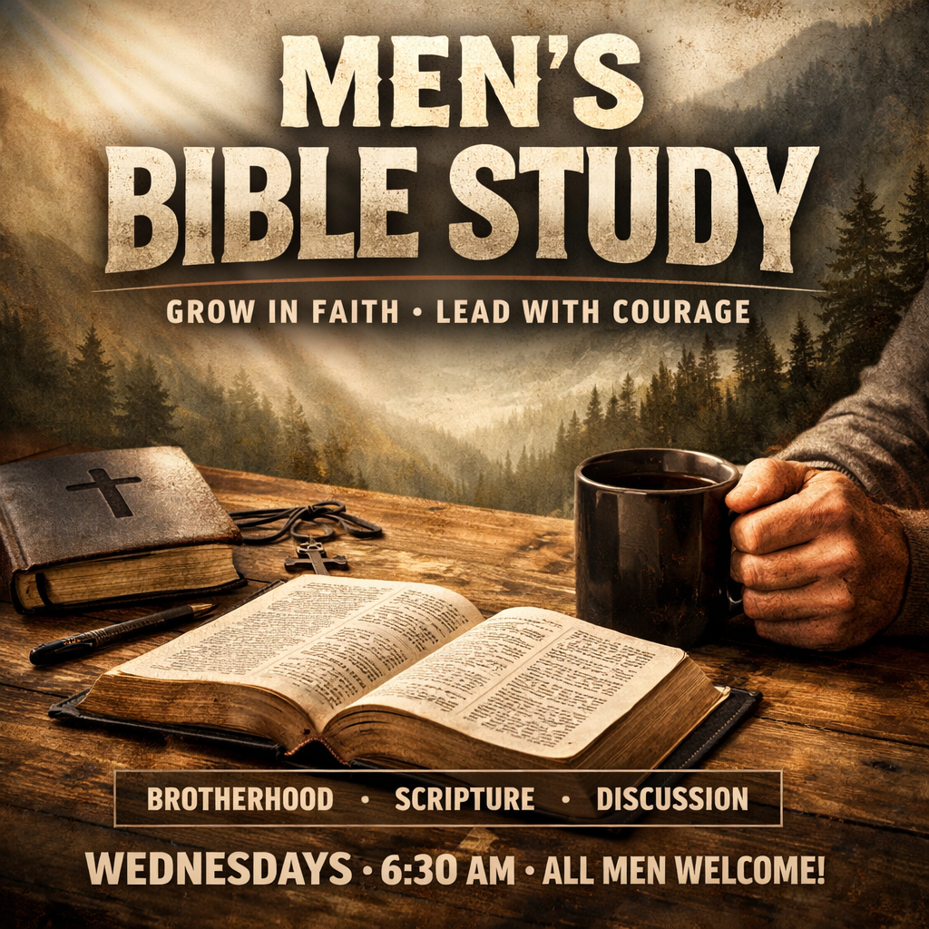 Start your day grounded in faith and fellowship. Join us for Men’s Bible Study every Wednesday at 6:30 AM as we grow together through Scripture, conversation, and community. All men are welcome—coffee is usually on!